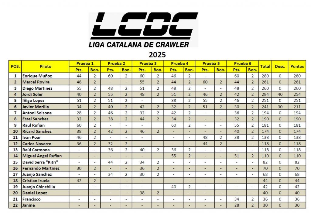 Clasificación general: Clasificación 2025 (14/12/2025)